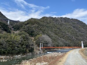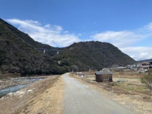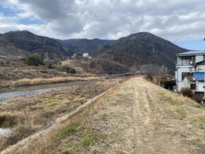 阿賀峠を通り、黒瀬川の河川敷を歩いて目的地に向かいます
